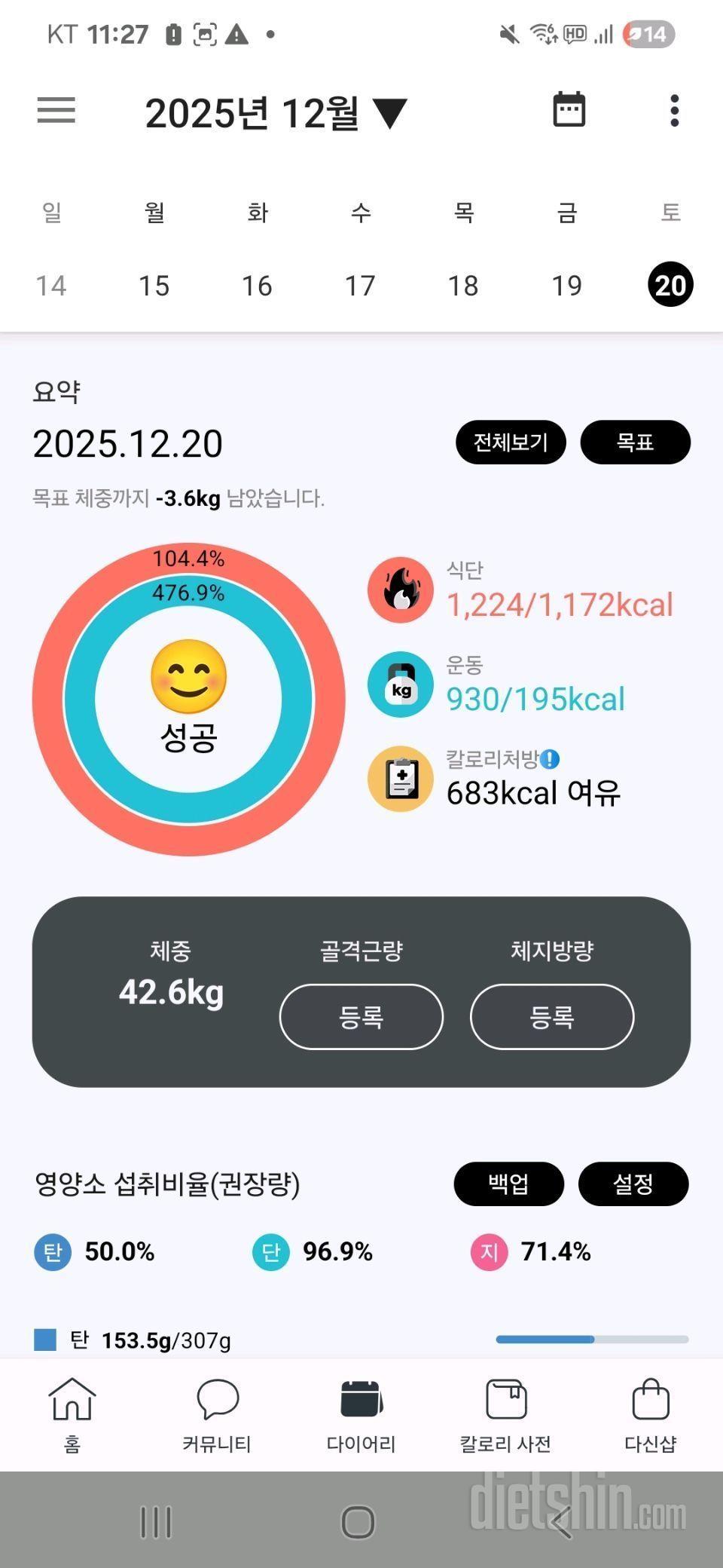 약170 kcal(아침먹은후)