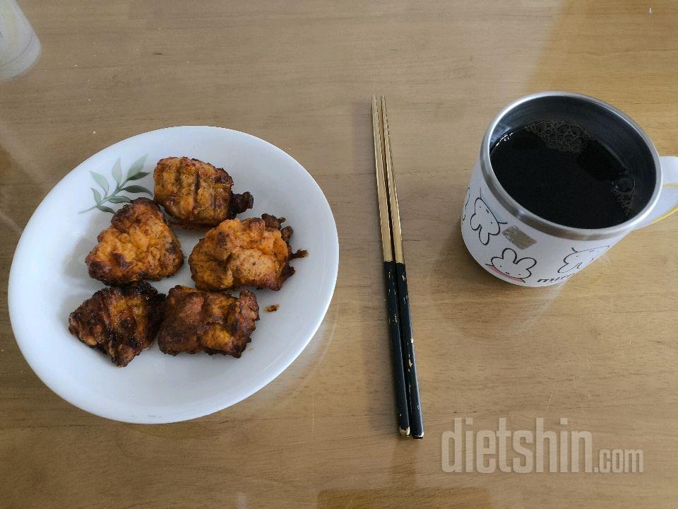 저녁식사: 고추바사삭 순살5조각, 디카페인 아메리카노1잔, 견과류1봉, 디카페인 아이스 아메리카노1잔