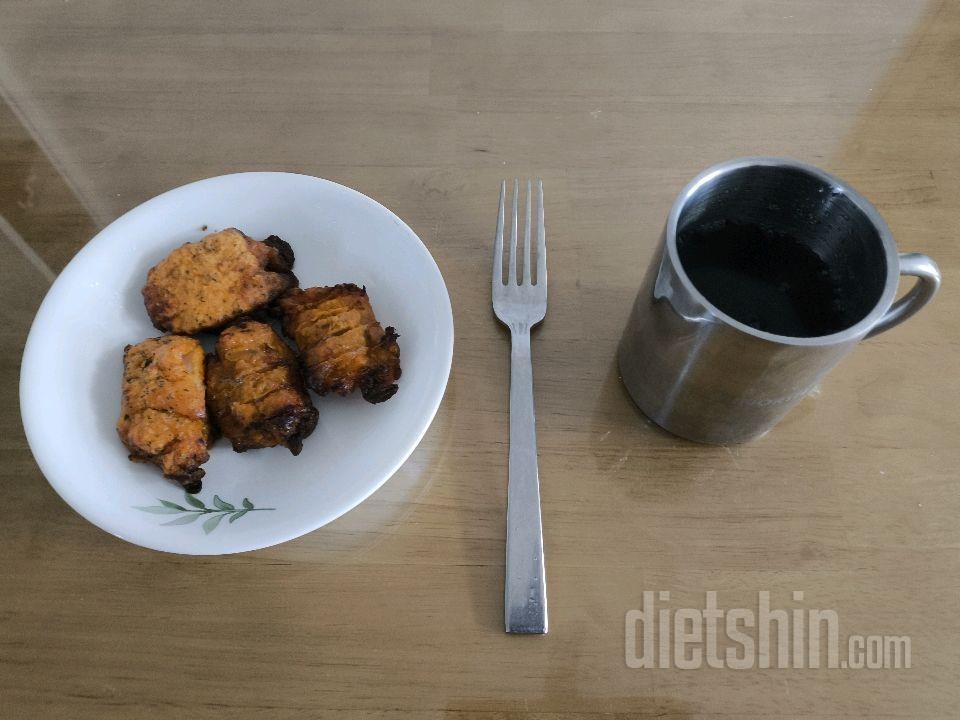 저녁식사: 구운계란2개,레몬단쉐1잔, 굽네 고추바사삭 순살4조각, 제로콜라1잔, 무가당두유1잔
