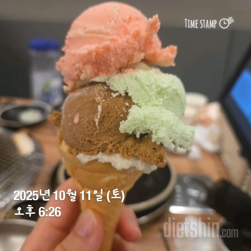 된장찌개 안 시키고 잘 참고 먹었는데 마지막은 또 눈치없는 신랑이 세 탑으로 쌓은 아이스크림..
