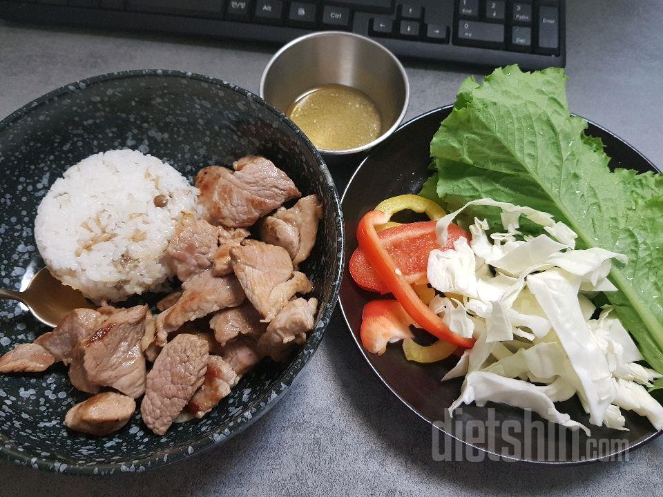 이런식으로 먹고 야채는 골고루 조금씩 덜어서 같이 먹었어요.