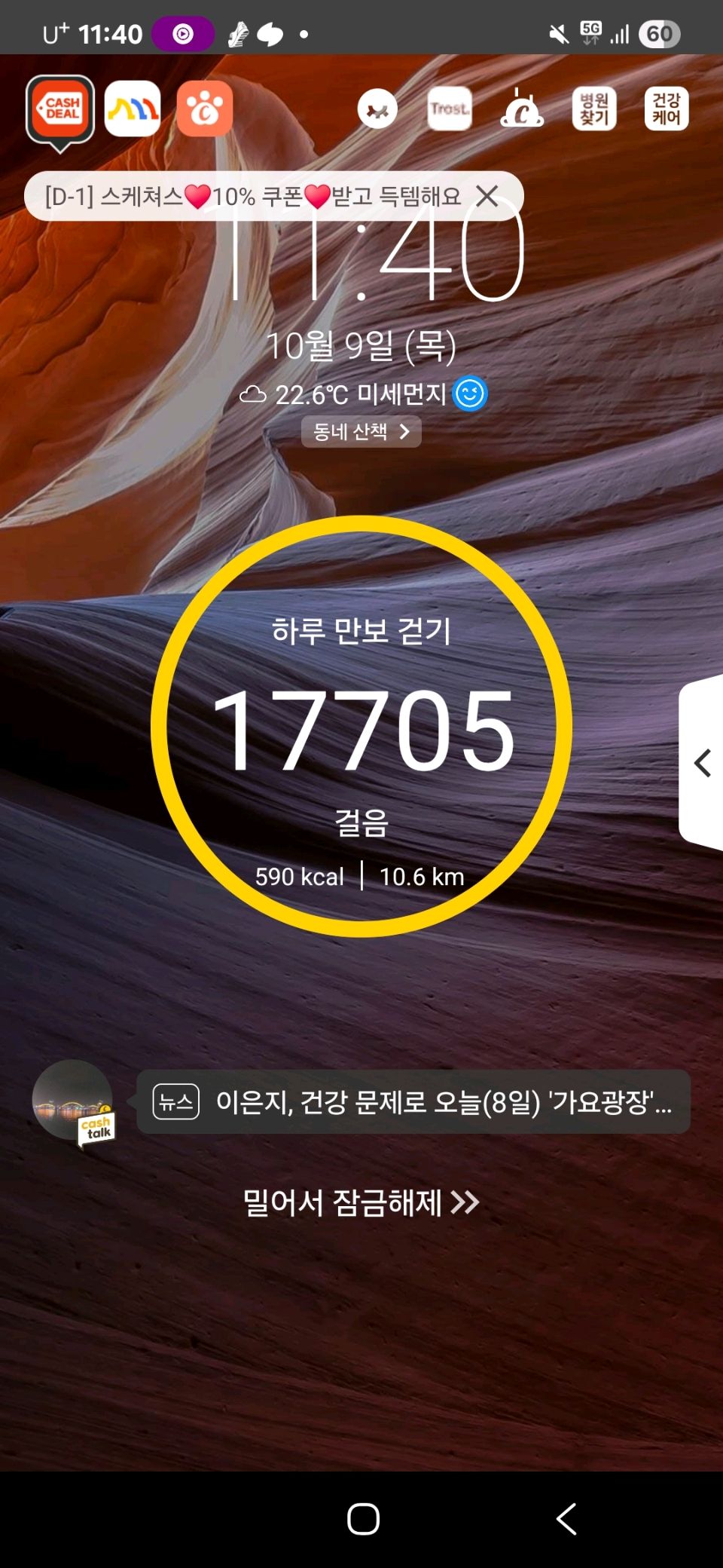 10월 08일 (음식 1460kcal, 운동 334kcal)
