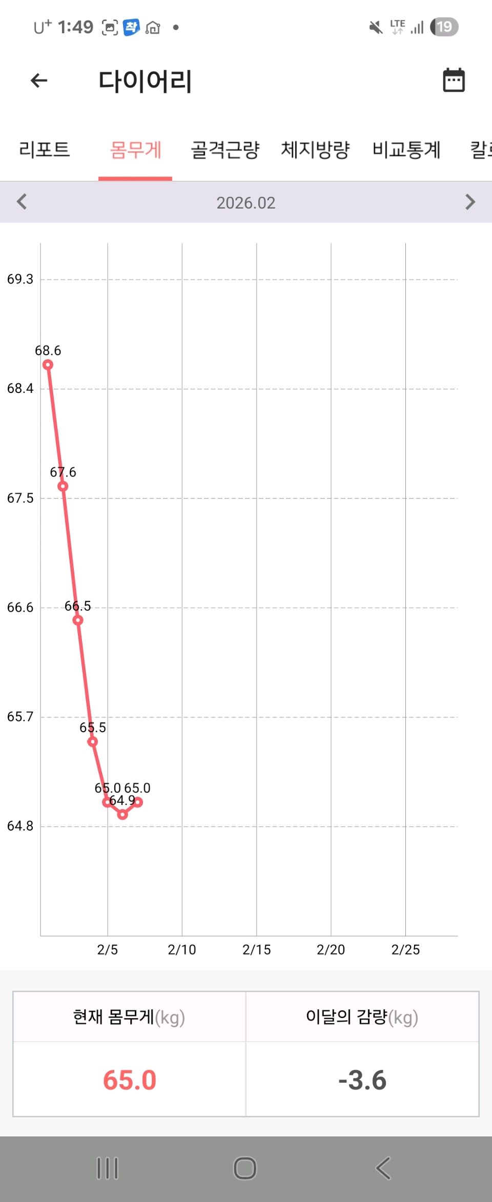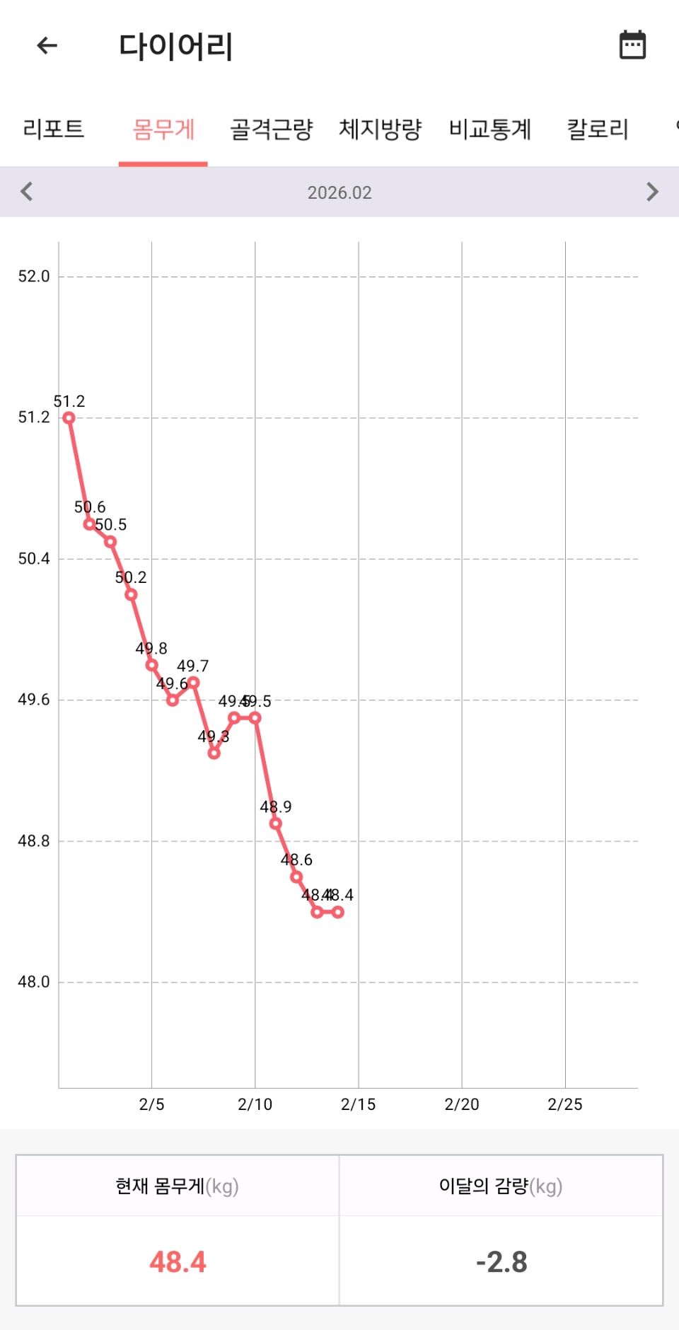 다이어트신에 칼로리 입력하면서 조심해서 먹었더니 2.8키로나 빠졌어요!^