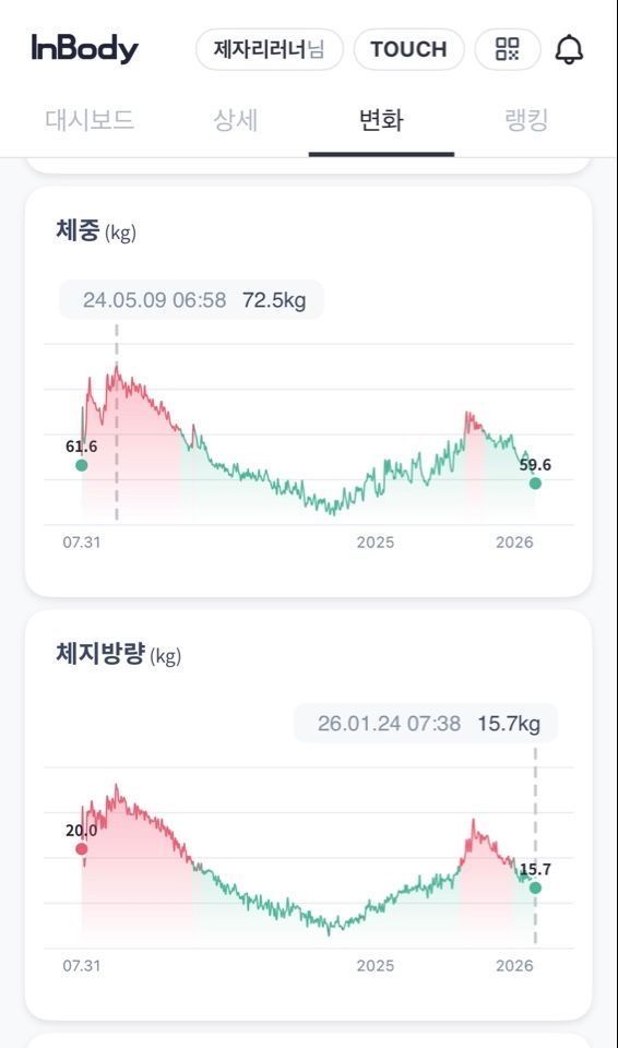 63kg 정도만 가도 만족할 거 같습니당... 그래도 의료 정상체중을 목
