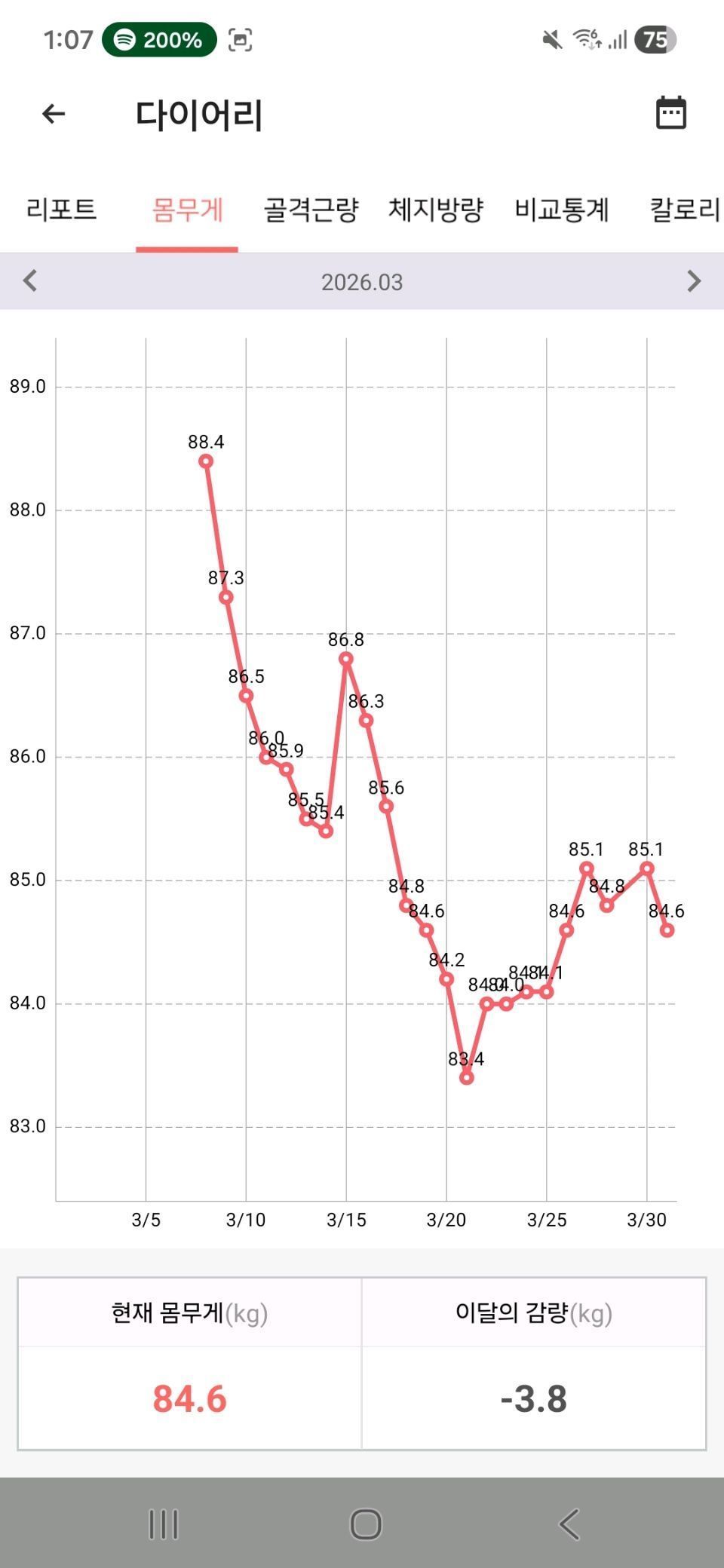 3월달 -3.8kg 감량