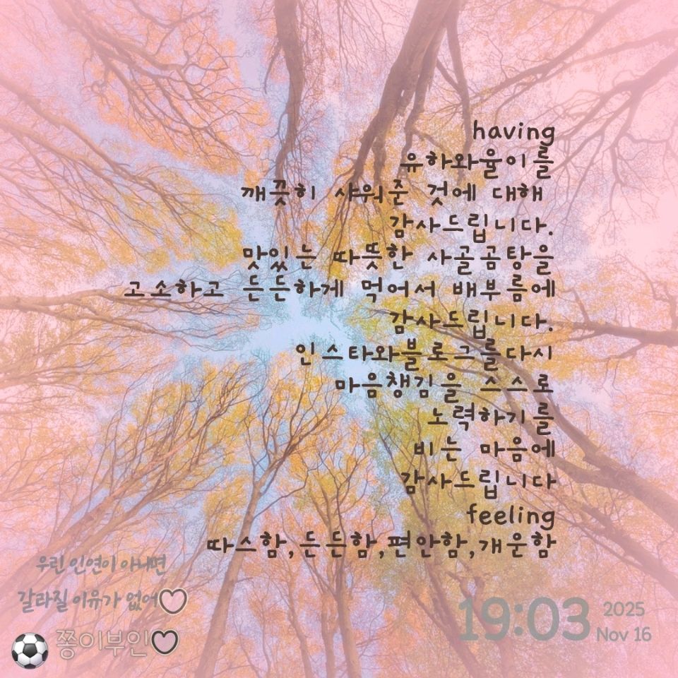 11월 17일 (음식 960kcal, 운동 604kcal)