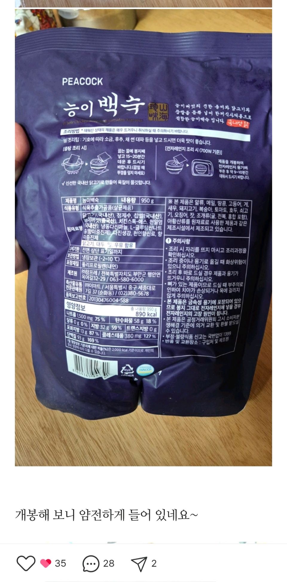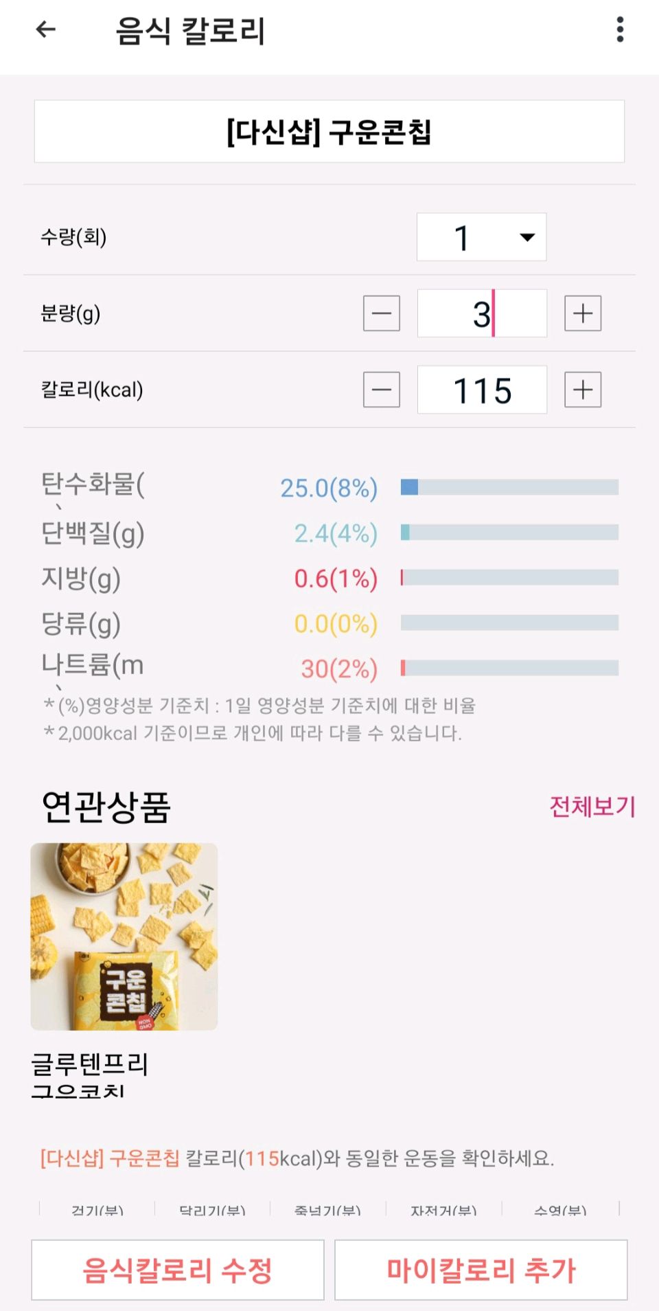 칼로리 등록 부탁드려요