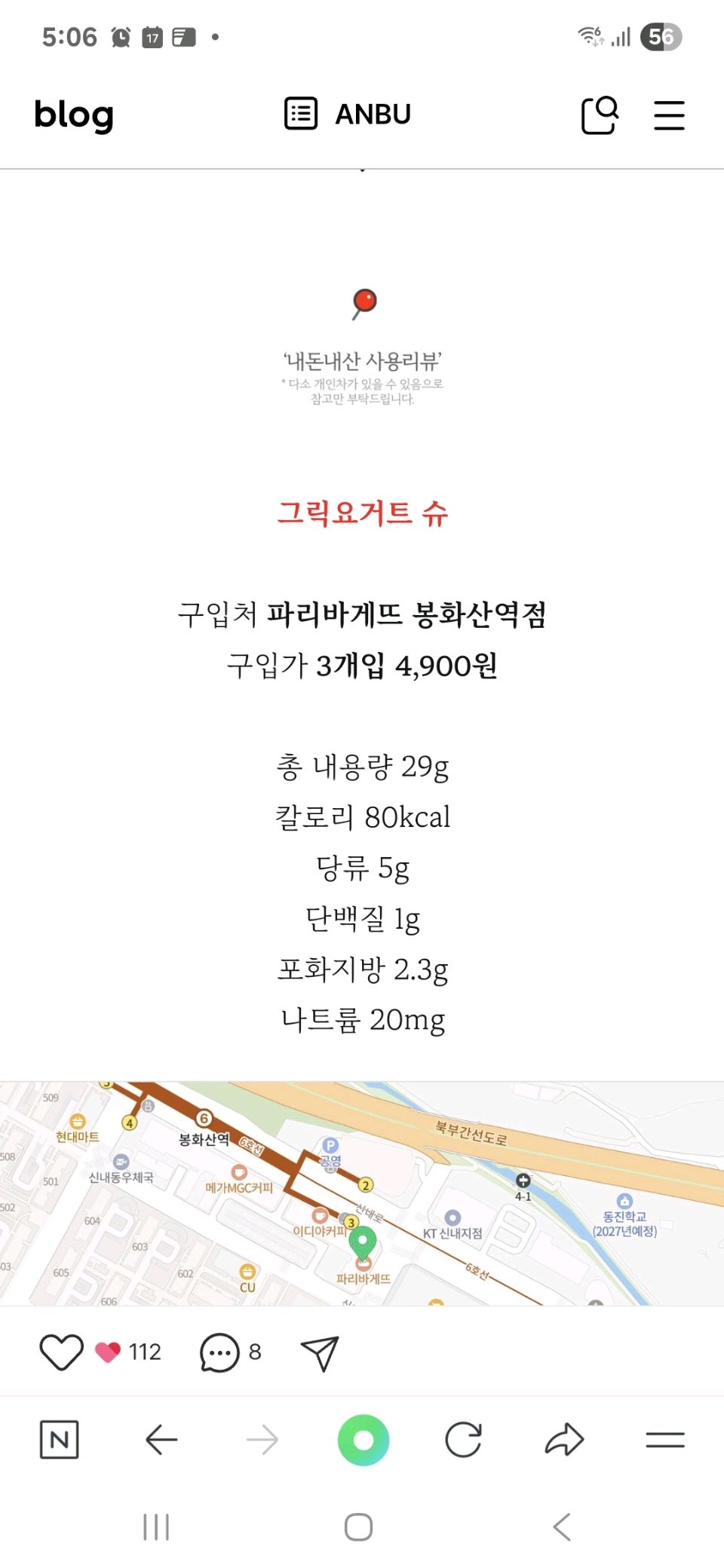 칼로리 등록 (파리바게뜨 그릭요거트 슈)