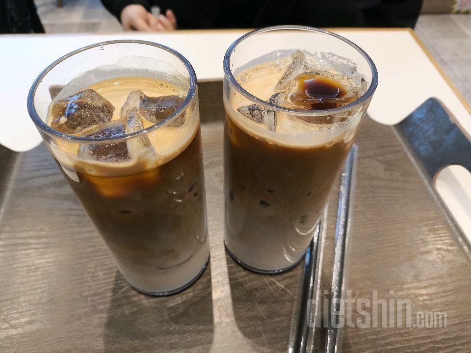 오후간식: 아이스 카페라떼1잔, 파이1/2개, 페퍼민트1잔