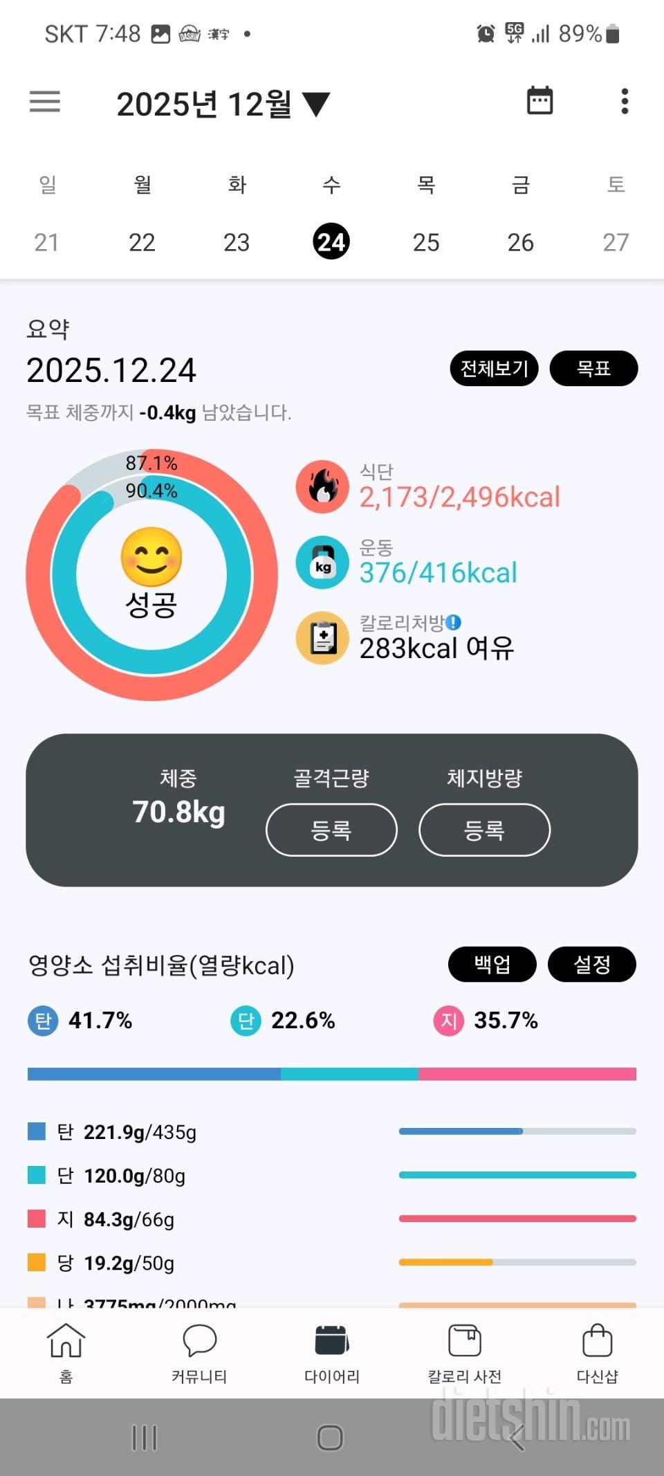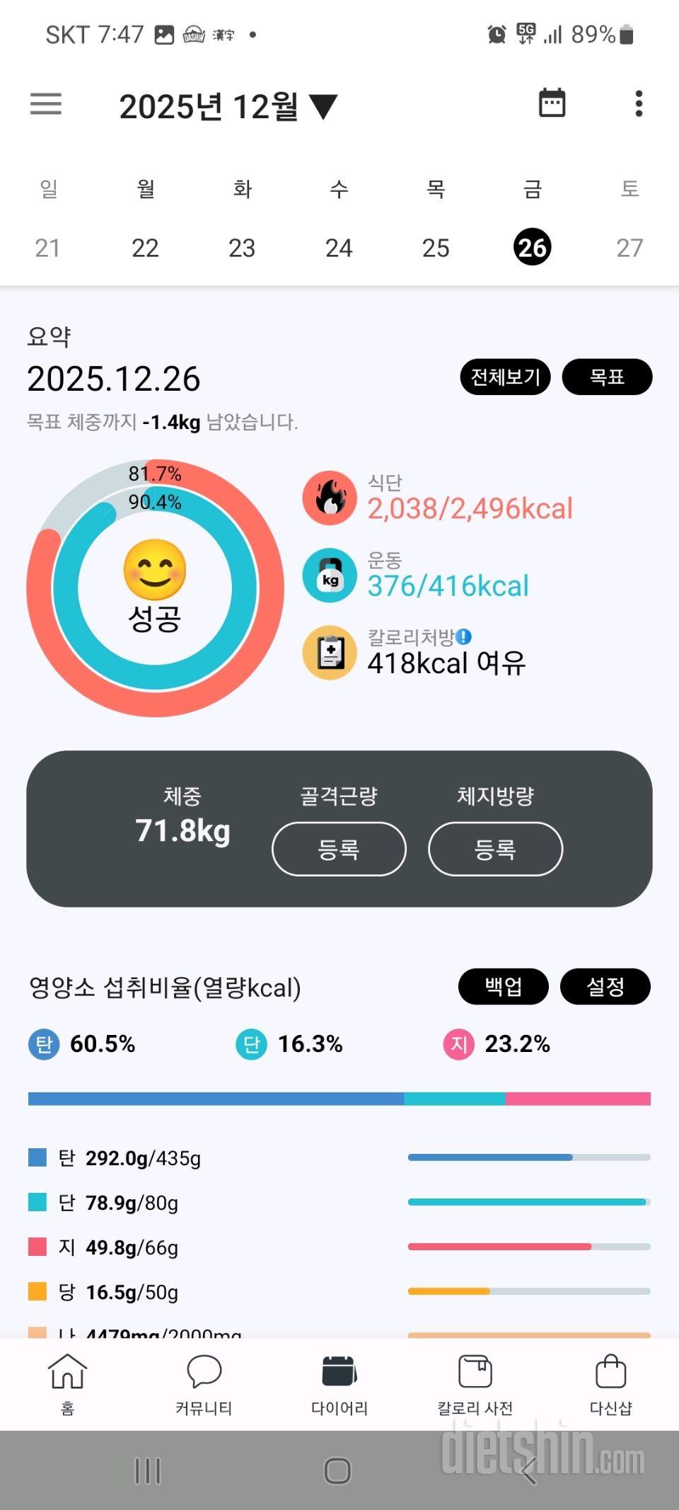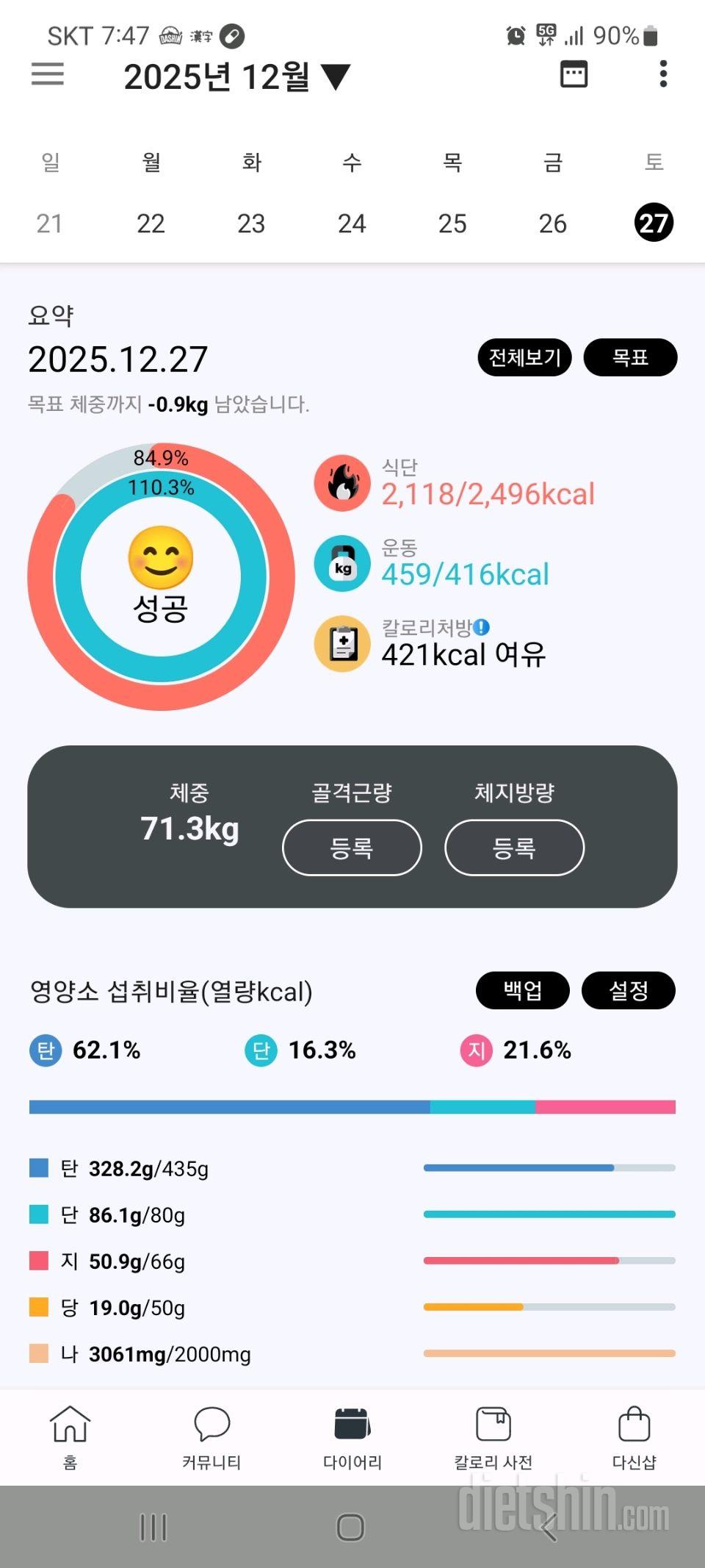 체중은 71.3kg인데 몸무게를 잰후에 사진촬영은 빼먹은것같다.