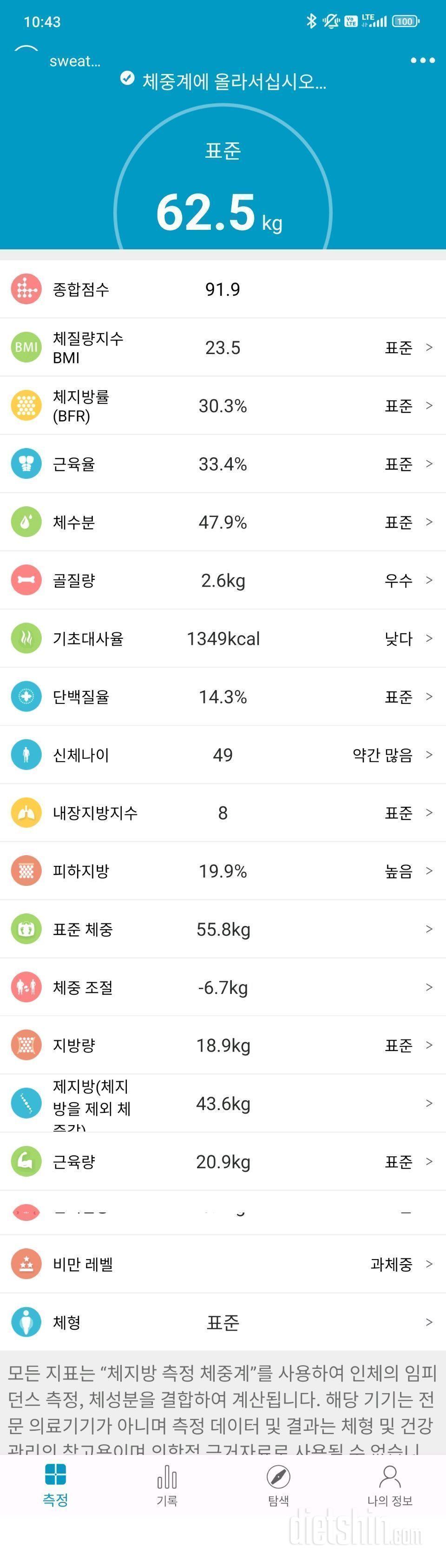 거의 표준이고 피하지방만 높음. 2026년은 50대로 내려가 보자!!!