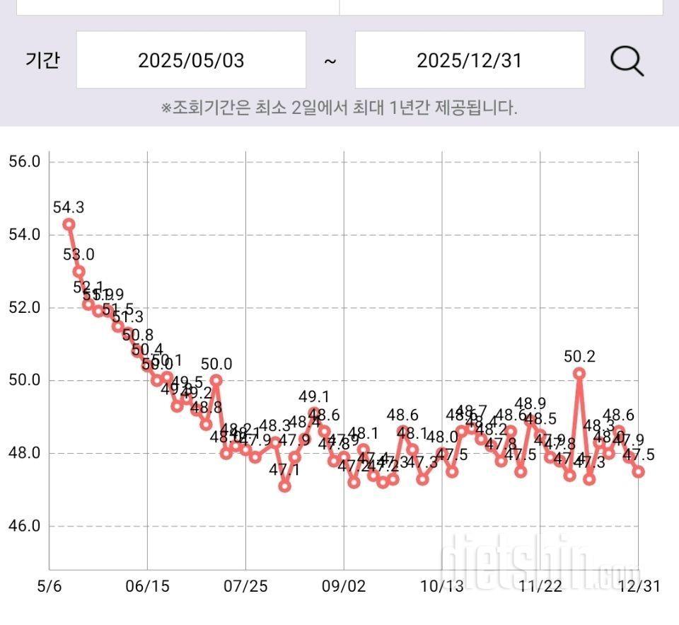 *2025년에는 50kg 밑으로 빼서 하반기에는 어렵게 유지했습니다.🤣
