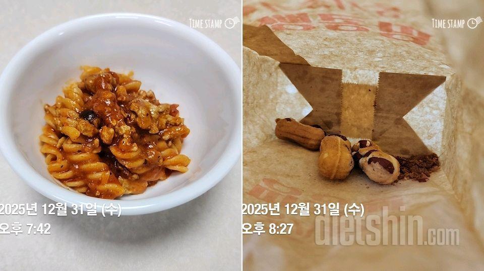 *저녁 - 미트토마토푸실리, 땅콩빵 반 남긴거 다 먹음요.🥲