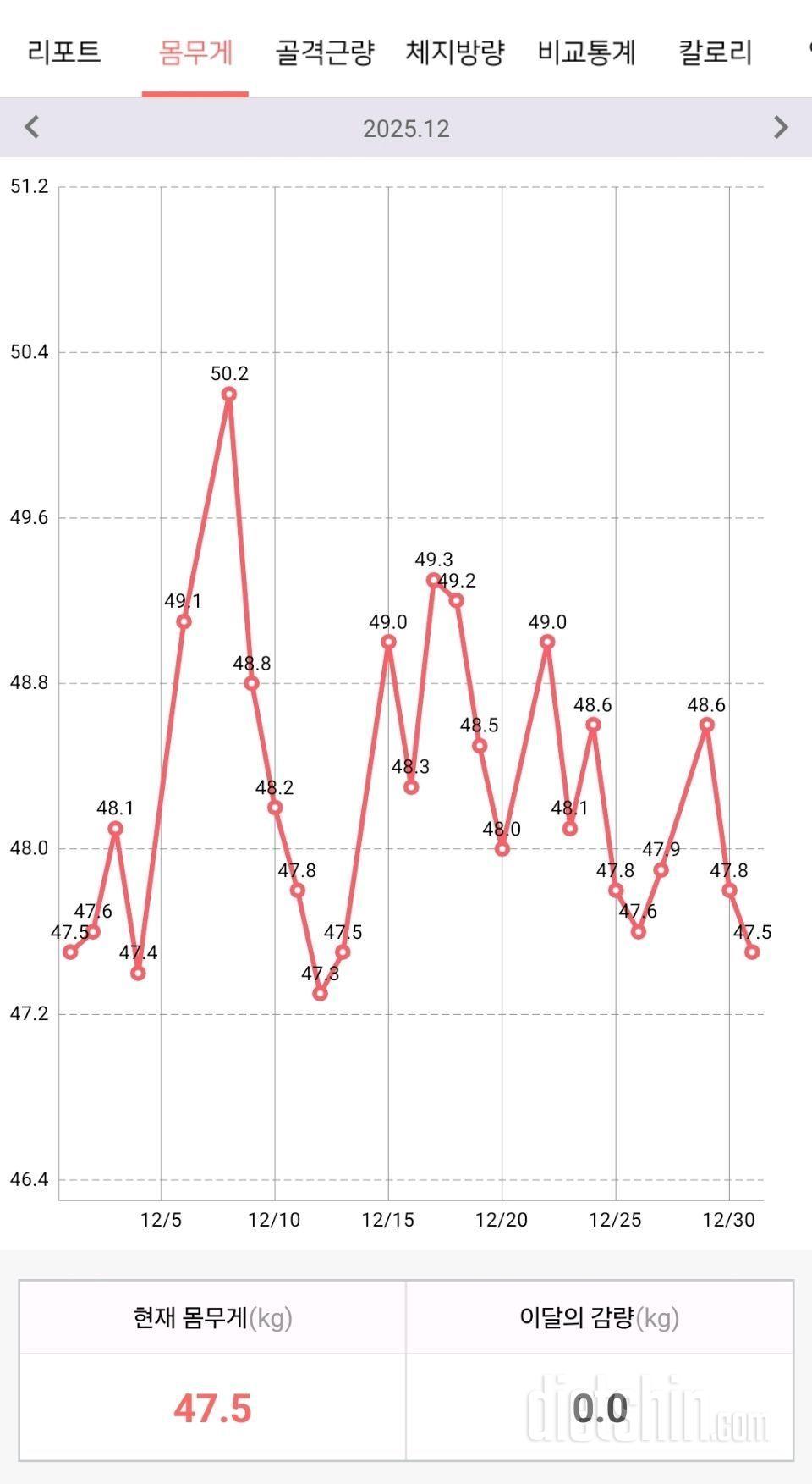 *아침 공체 47.5kg으로 올해 몸무게 마무리요.😉