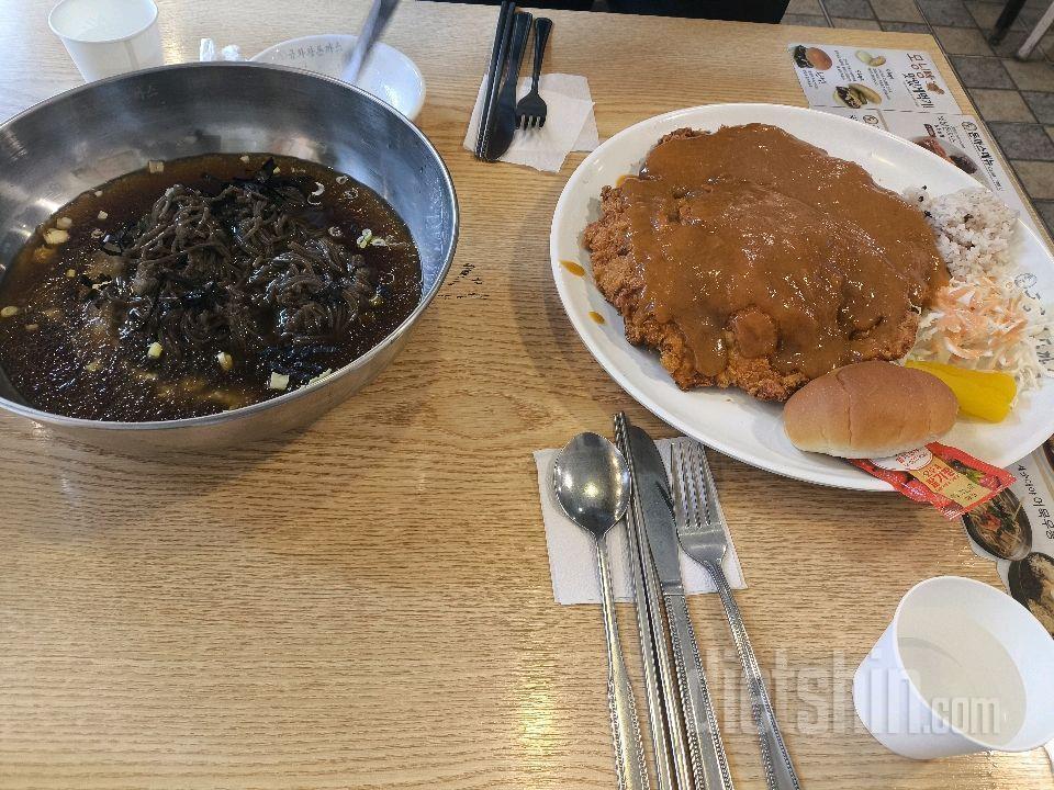 점심식사: 냉모밀3젓가락, 대왕돈가스1/2덩이