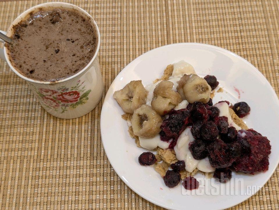 아침은 포도없이 어제랑 비슷. 윗트비트&바나나를 추가.