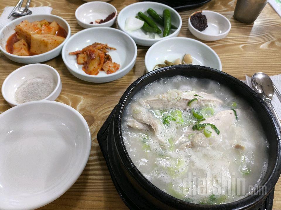 점심식사: 삼계탕1인분, 깍두기3조각, 디카페인 아이스 아메리카노2잔, 견과류1봉
