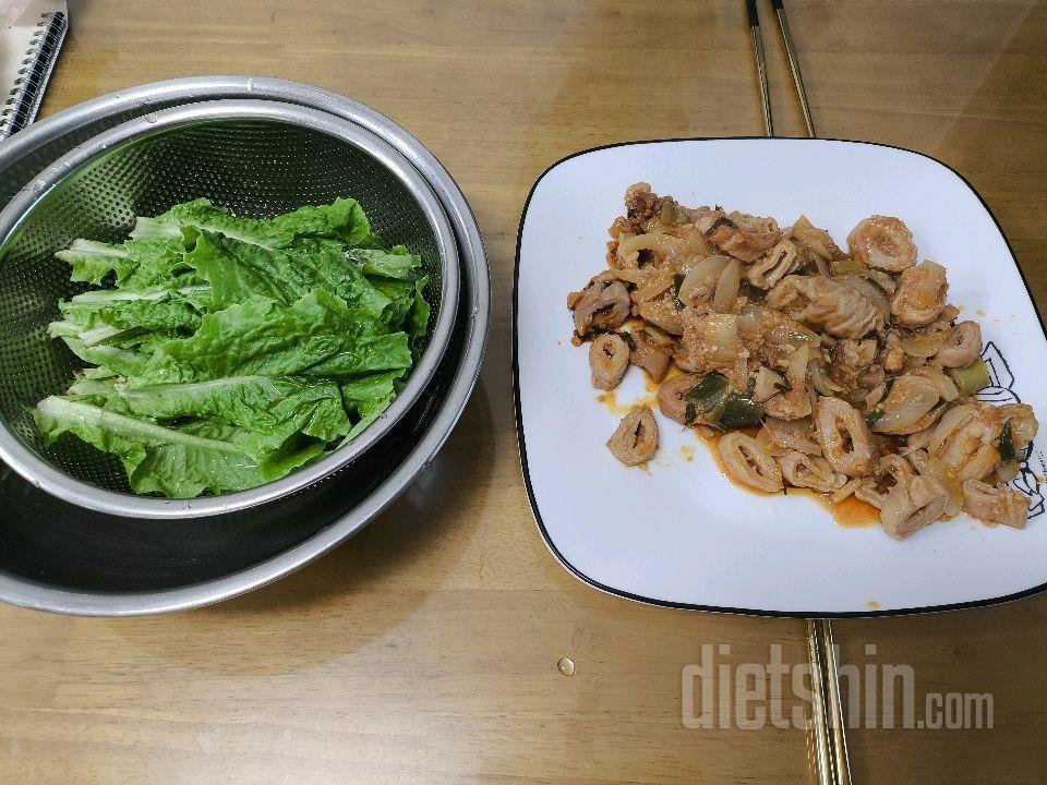 저녁식사: 상추4장, 막창볶음5조각, 바나나 작은 것1개, 스테비아 믹스커피1잔, 메밀파과자1조각