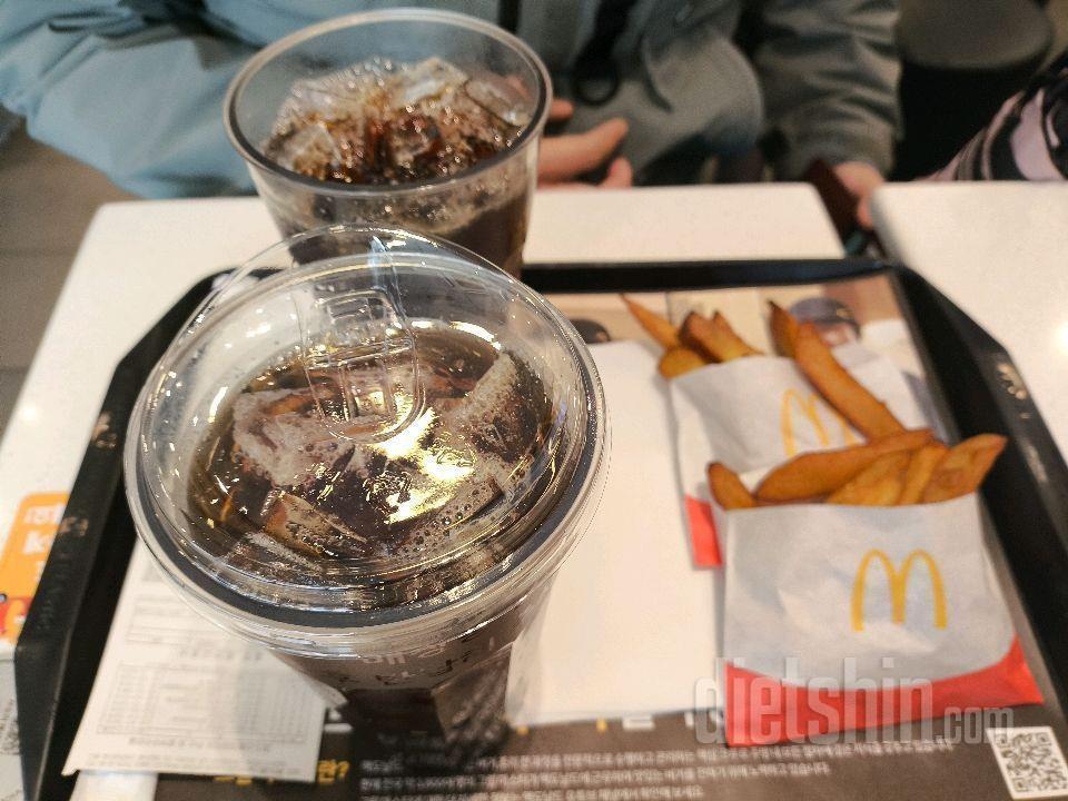 저녁식사: 디카페인 아이스 아메리카노 라지1잔, 고구마 후라이1봉, 맥너겟4조각, 아이스크림콘1개