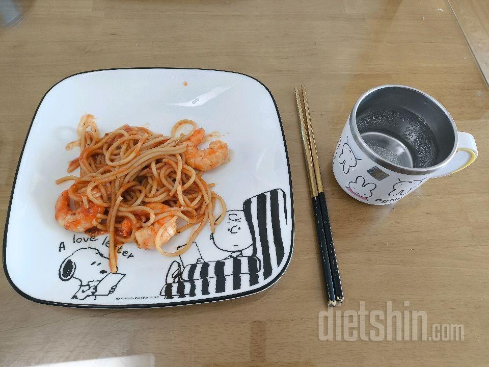 점심식사: 새우 토마토 파스타2/3인분, 제로 사이다1잔, 디카페인 아메리카노2잔, 샤인머스켓5알, 견과류1봉