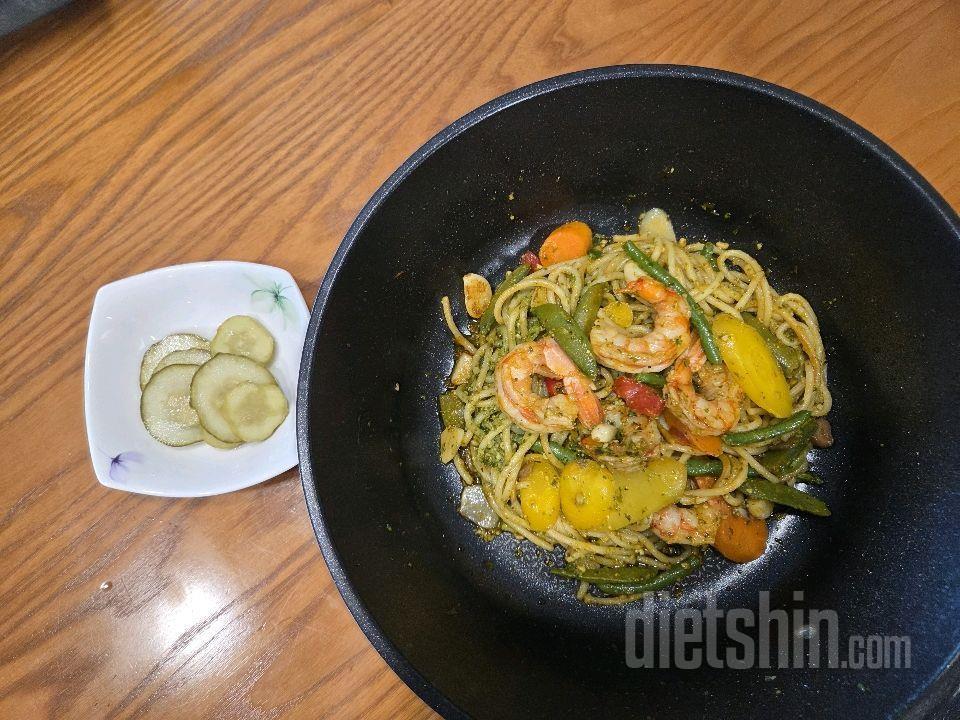 점심/새우야채바질파스타 옥수수1/2 그릭요거트