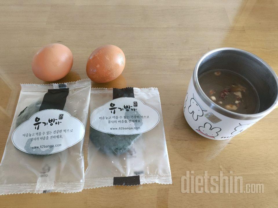 저녁식사: 구운 계란2개, 쑥개떡2개, 생강차1잔, 디카페인 아메리카노1잔