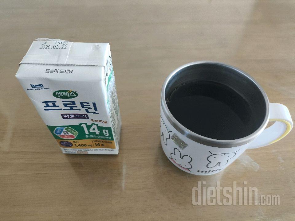 아침식사: 단백질 음료 락토프리1팩, 아메리카노2잔