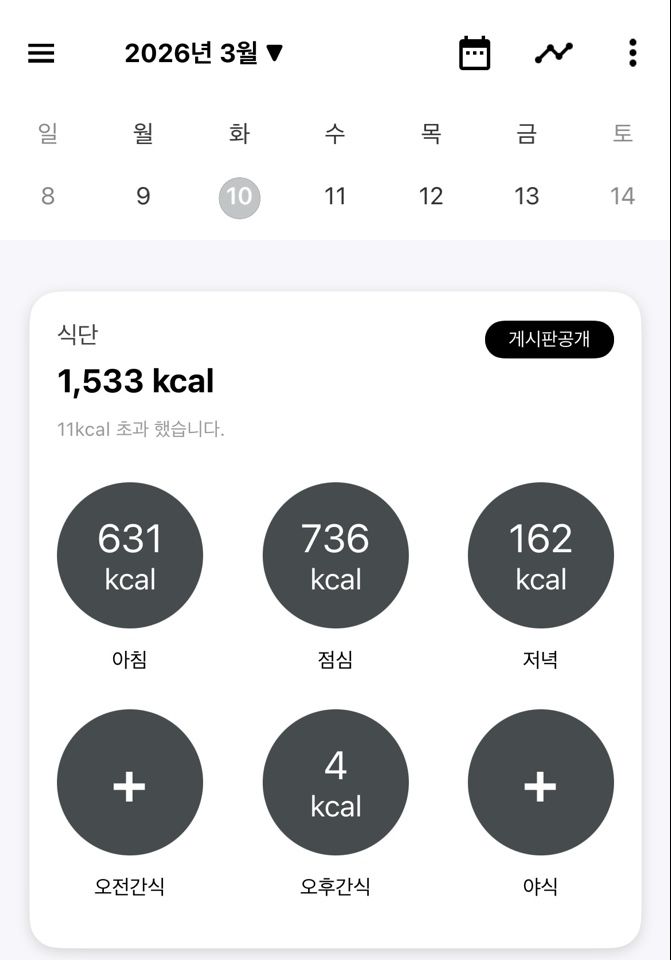 03월 10일 (운동 533kcal)