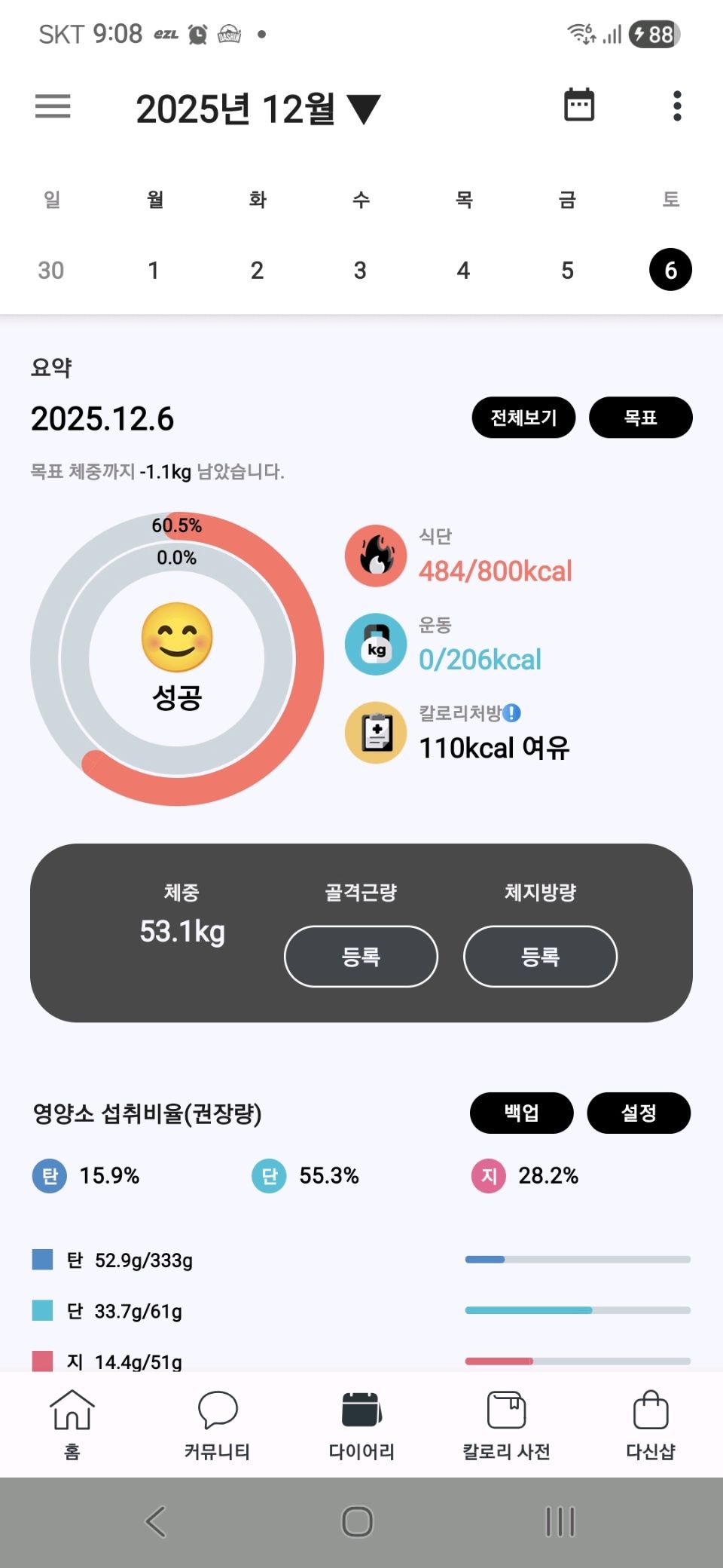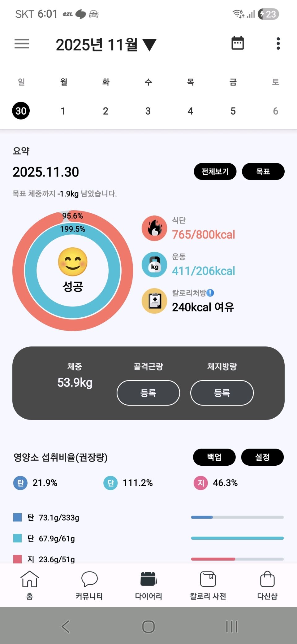 30일 1,000kcal 식단6일차 성공!