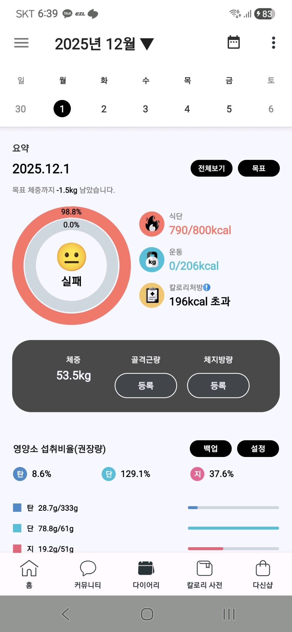 식단 관리, 운동 관리, 체중 관리
