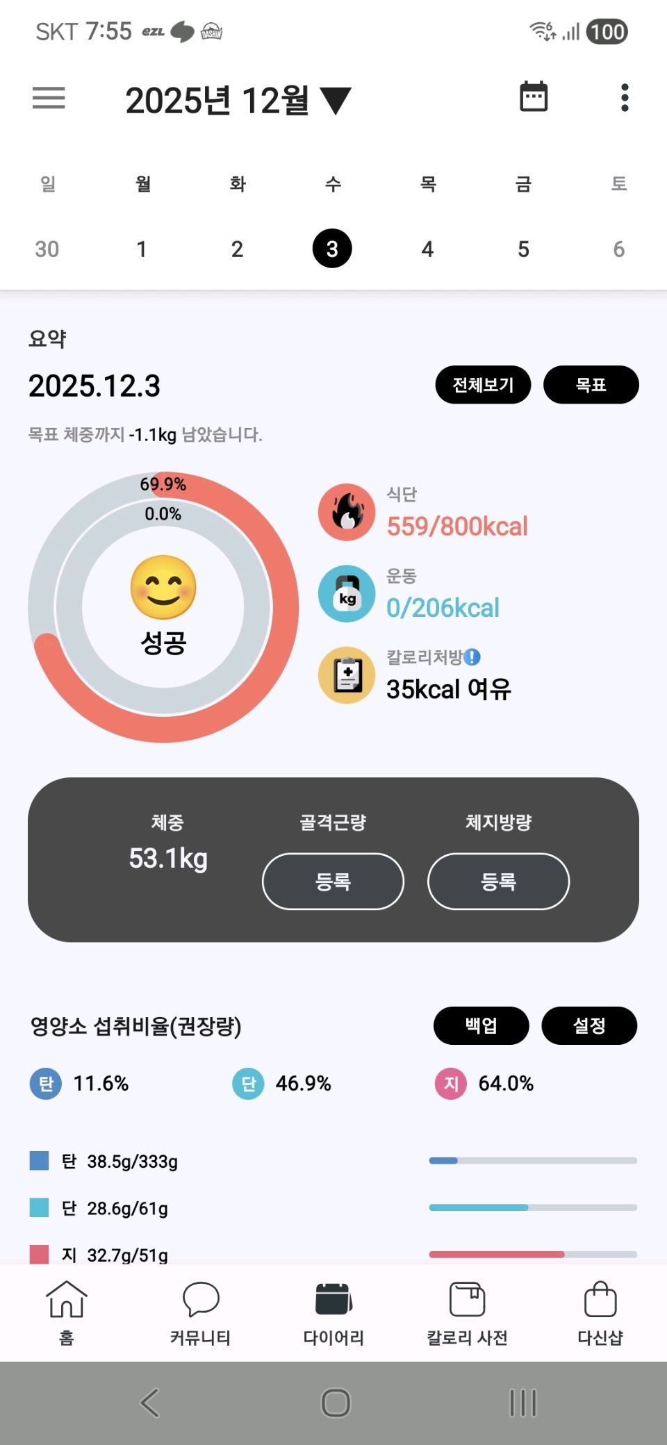 30일 1,000kcal 식단3일차 성공!