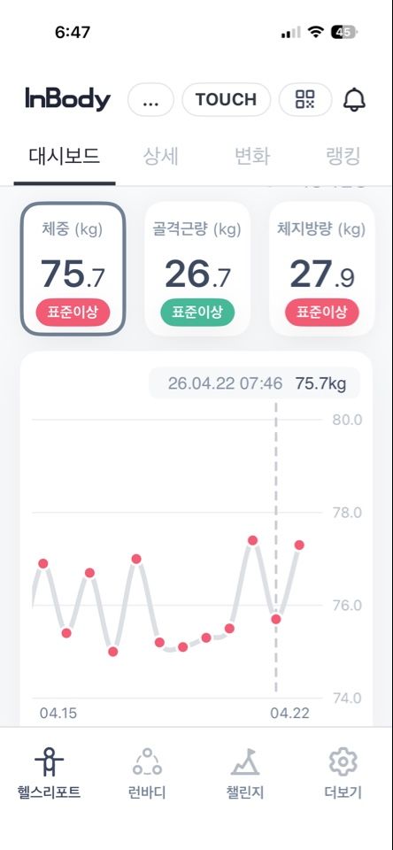 7일 아침 몸무게 재기47일차 성공!
