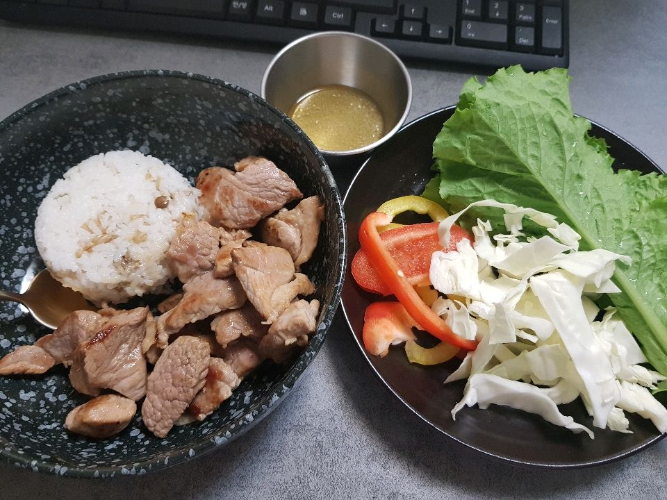 일반식/밥 양 많이 줄임/야채 위주/고기 틈틈이 or 프로틴 섭취/간식