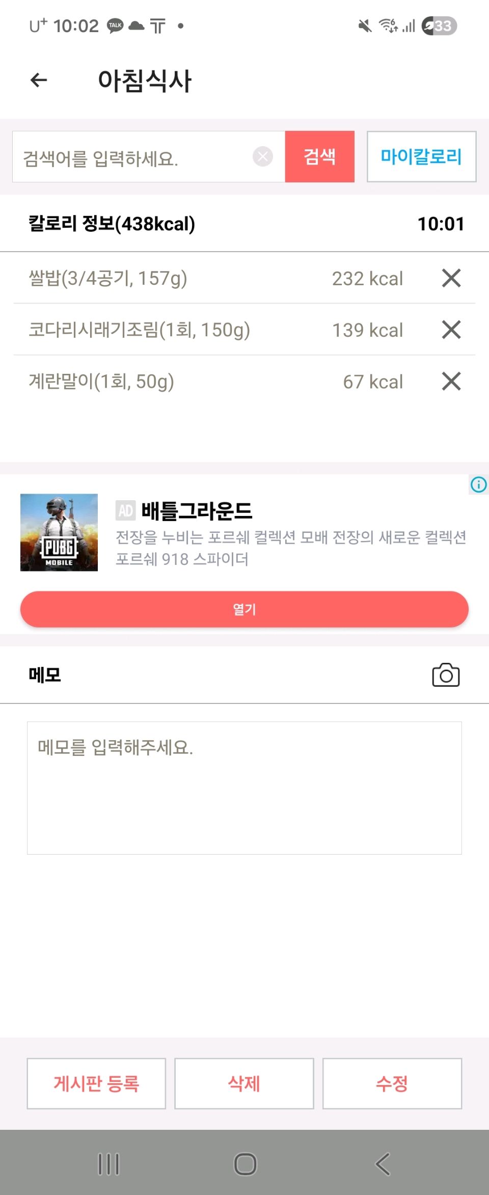 식단 게시글 중복등록 제한 안내