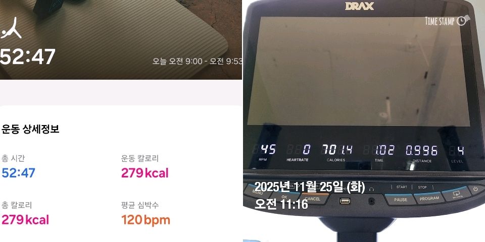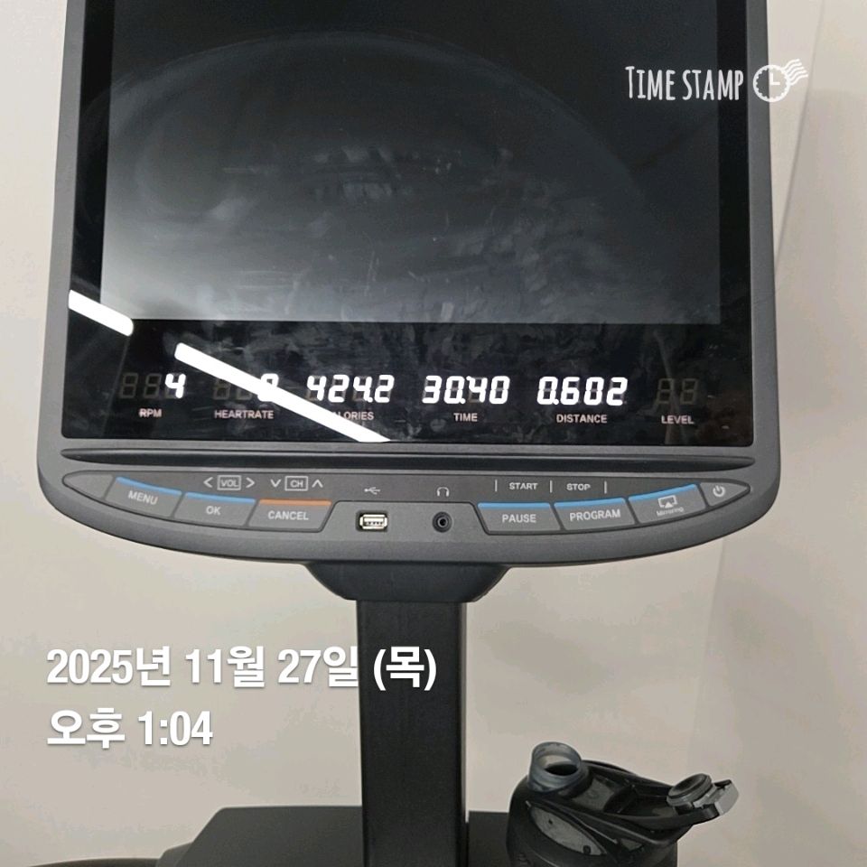 오늘 공복유산소했어요. 드라마를 중간에 자르지 못해서 드라마보면서 그 힘