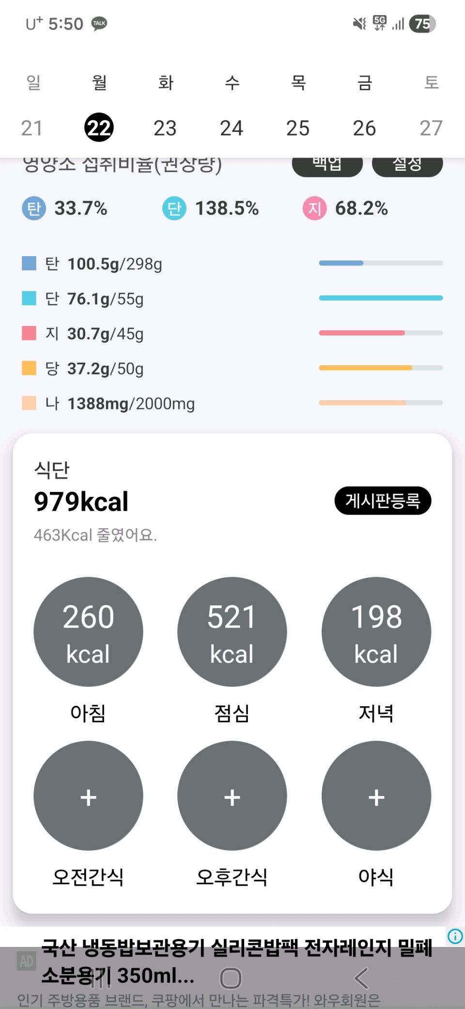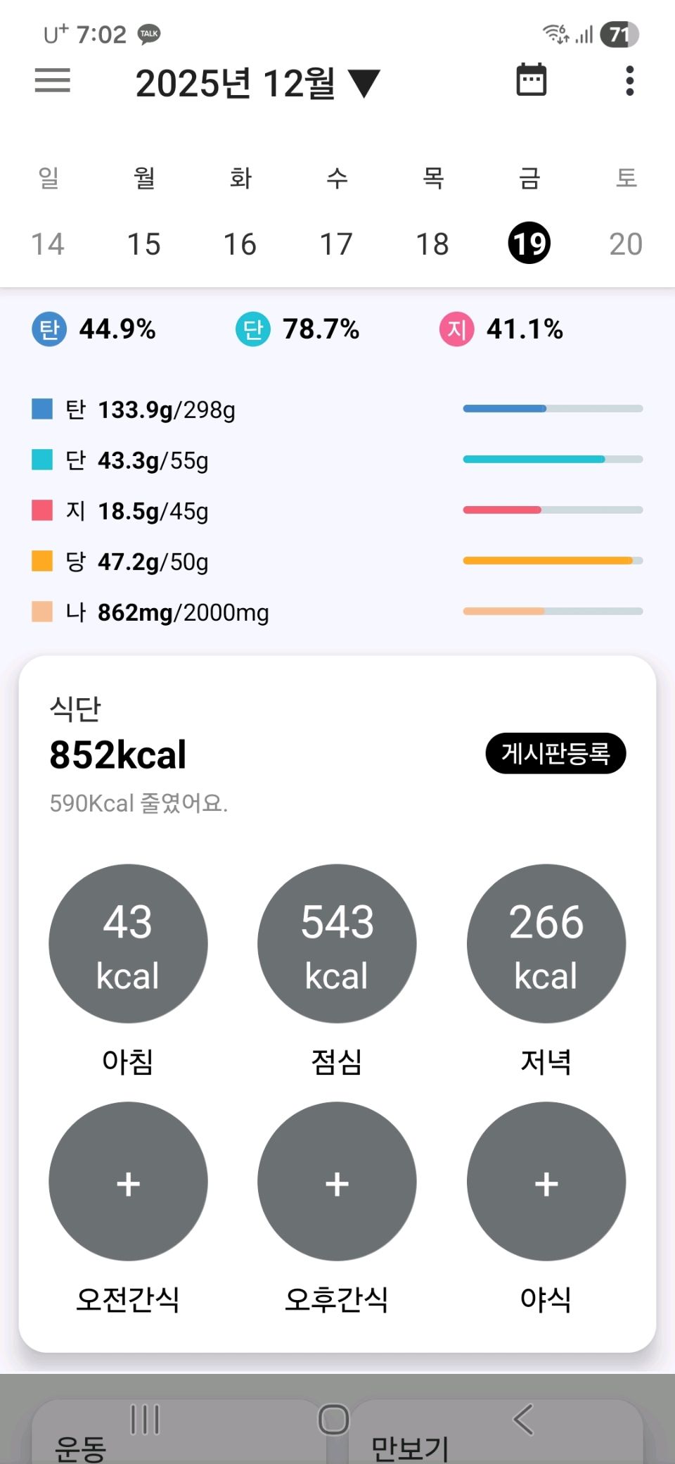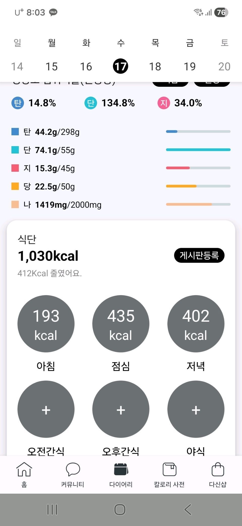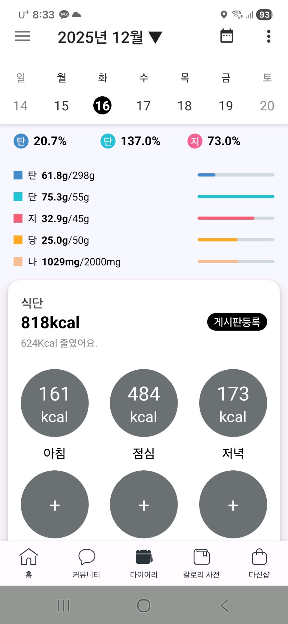 운동과 식단의 한계치에 온 것 같아요. 식단 잘 나가다가 저녁에 애들이