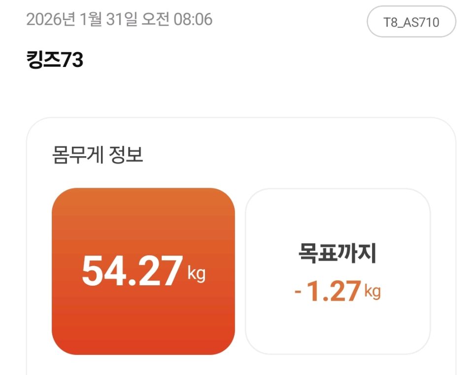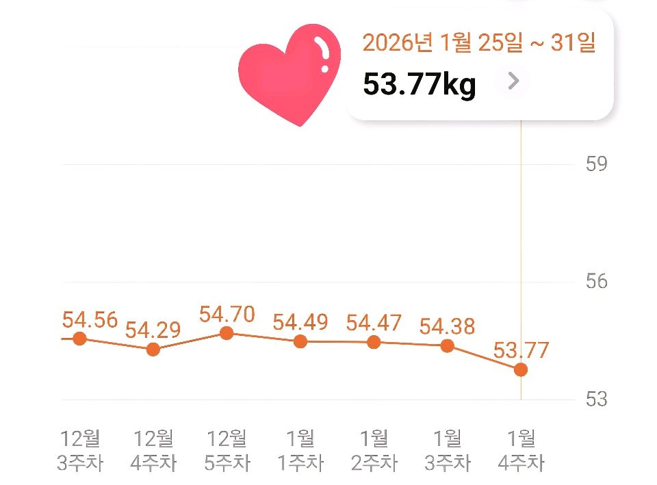 1월 세번째 공체는 54.56kg 유지♡ 토요일에 못해서 일요일 공체로^