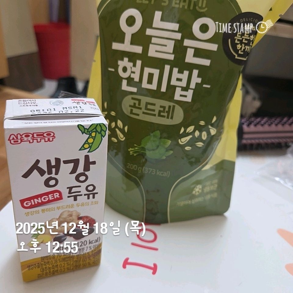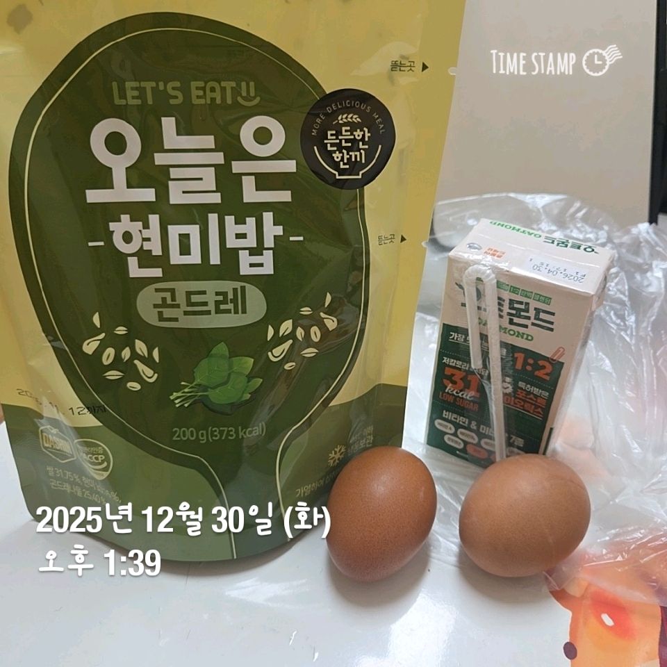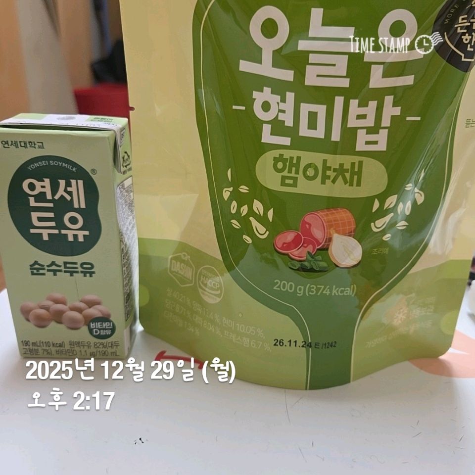 아침은 보노스프와 십원빵 점심은 현미밥과 두유, 구운달걀 저녁은 간단히