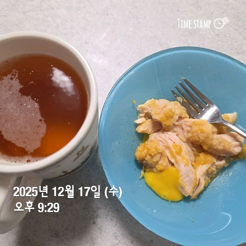 아침: 강황커피, 바나나 점심: 커피, 그릭요거트, 크래커 저녁: 치킨