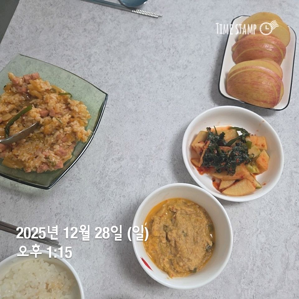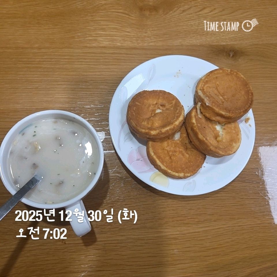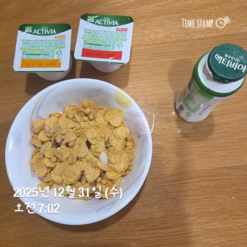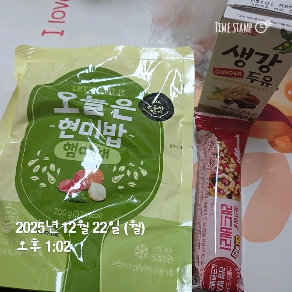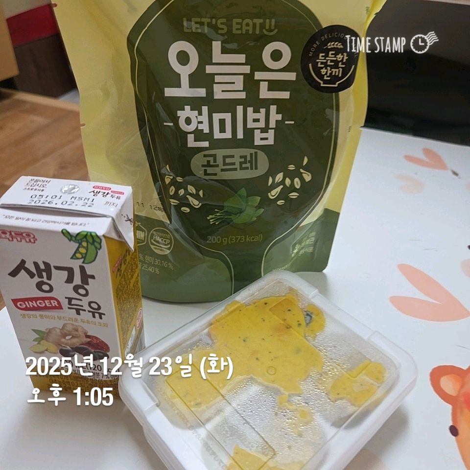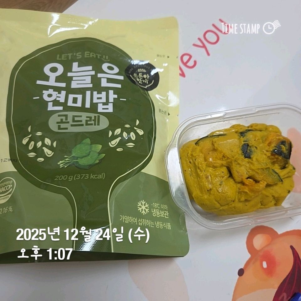 아침은 시리얼 점심은 현미볶음밥 저녁은 동지라고 팥죽.. 팥죽을 안 먹으