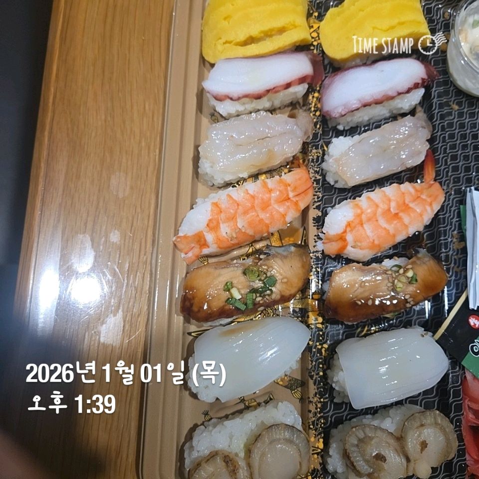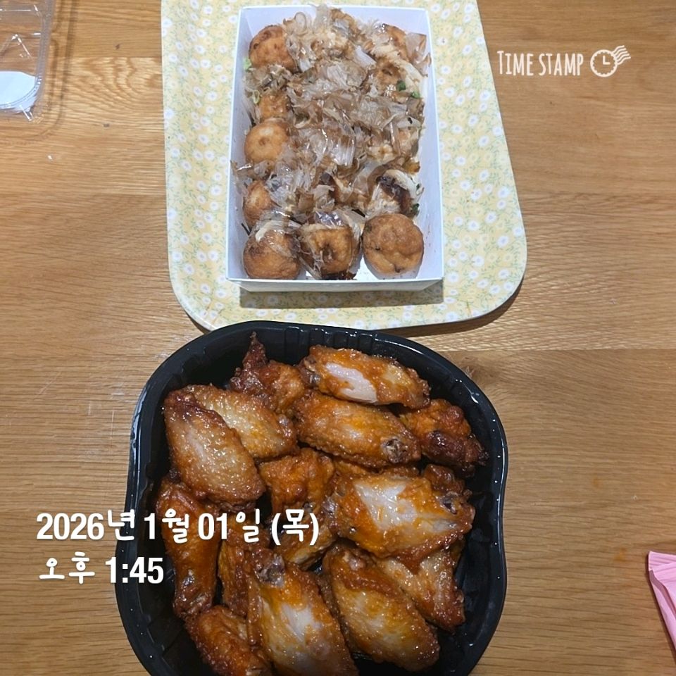 아침일찍 떡만둣국 점심은 초밥이랑 타코야끼, 윙봉 이른 저녁은 호박 고구