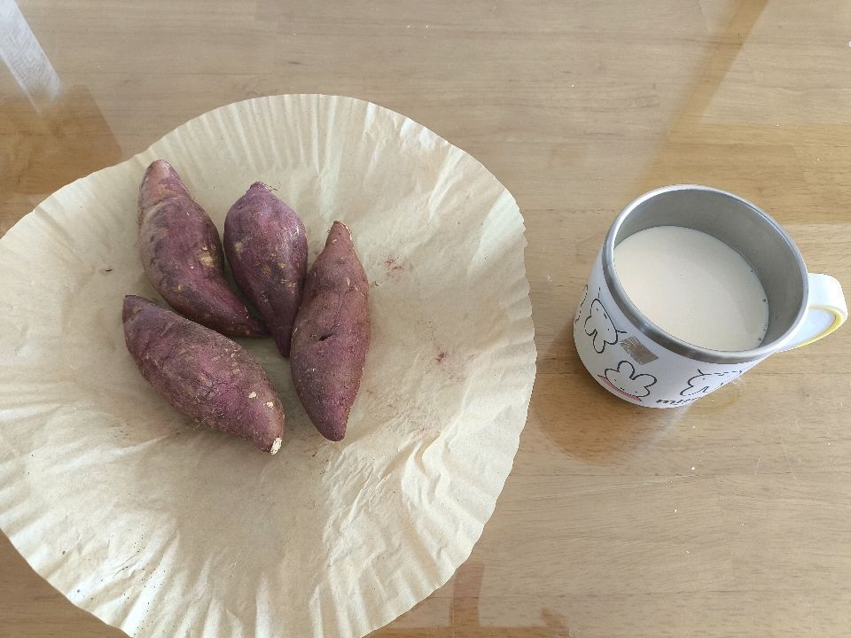 아침식사: 무가당두유1잔, 아메리카노2잔점심식사: 군고구마 작은 것2개,