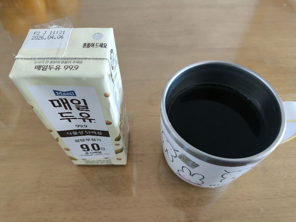 아침식사: 무가당두유1개, 카페라떼1개오전간식: 디카페인 아메리카노1개점