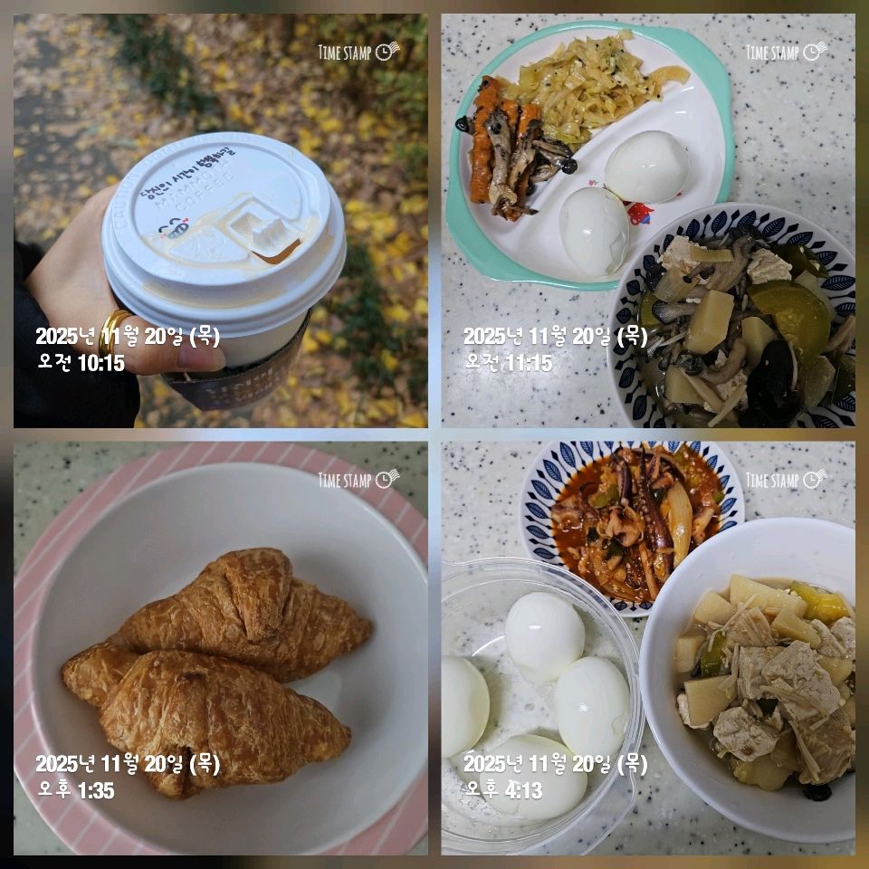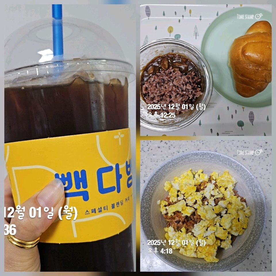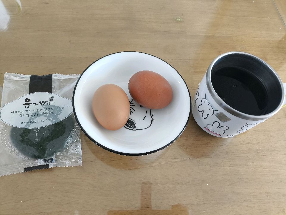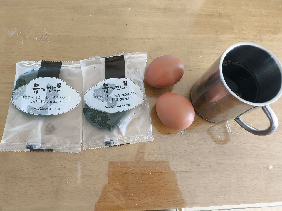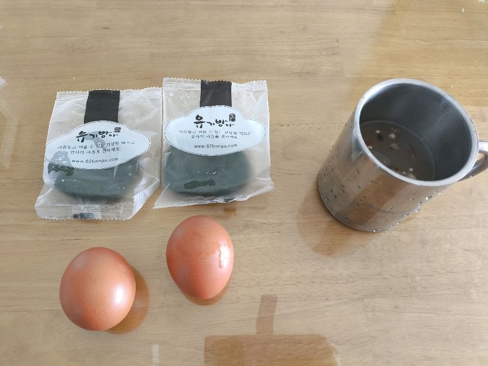 아침식사: 무가당두유1잔, 아메리카노1잔점심식사: 쑥개떡2개, 구운계란2