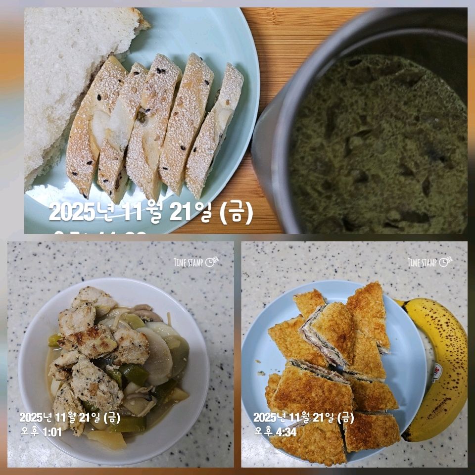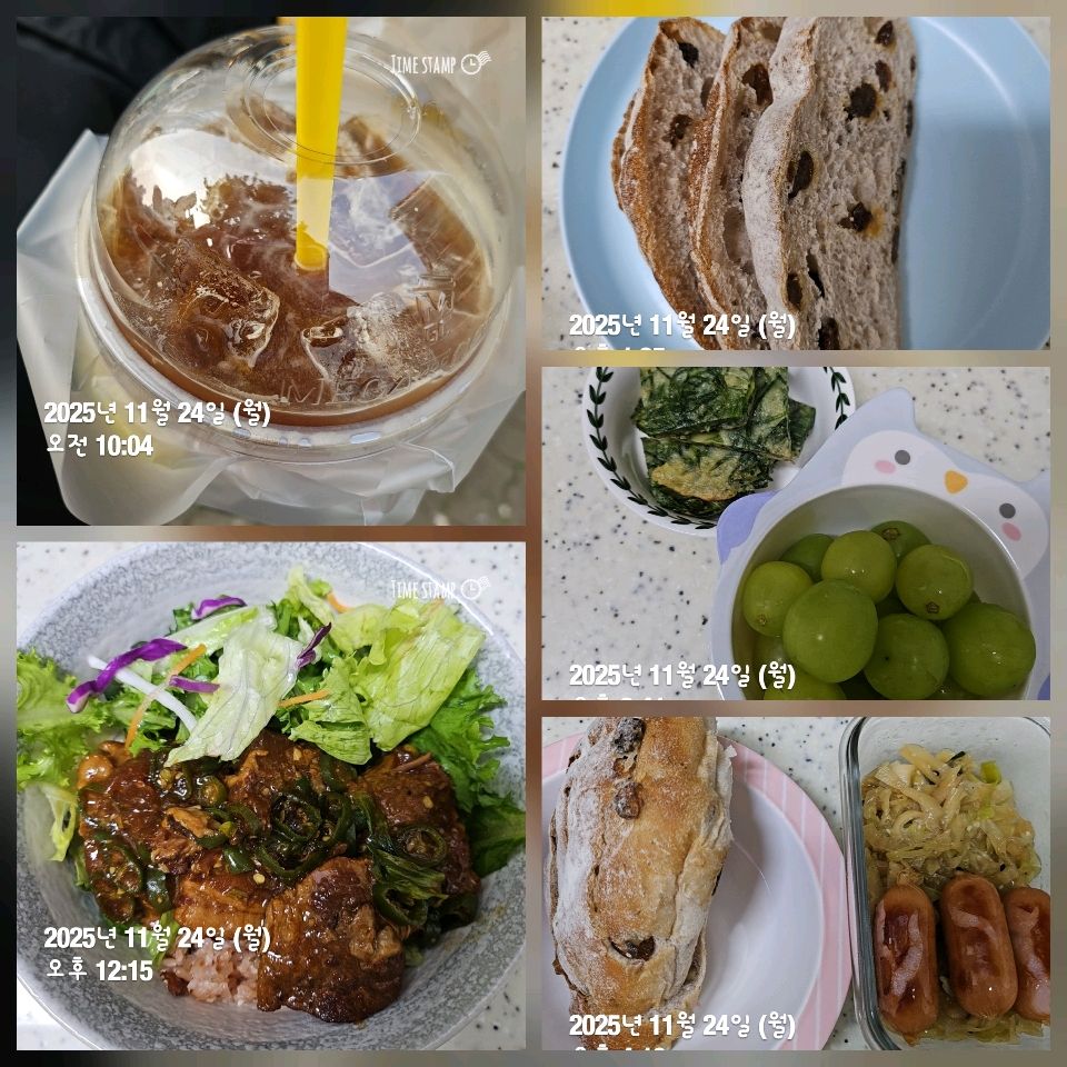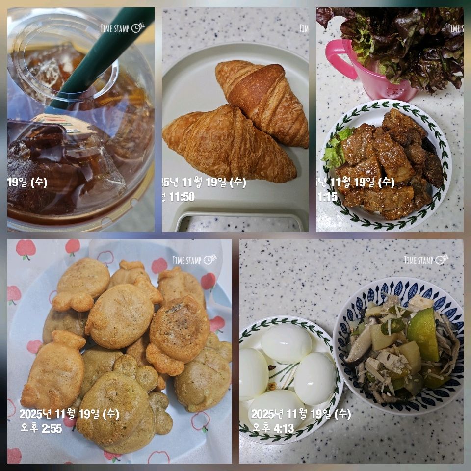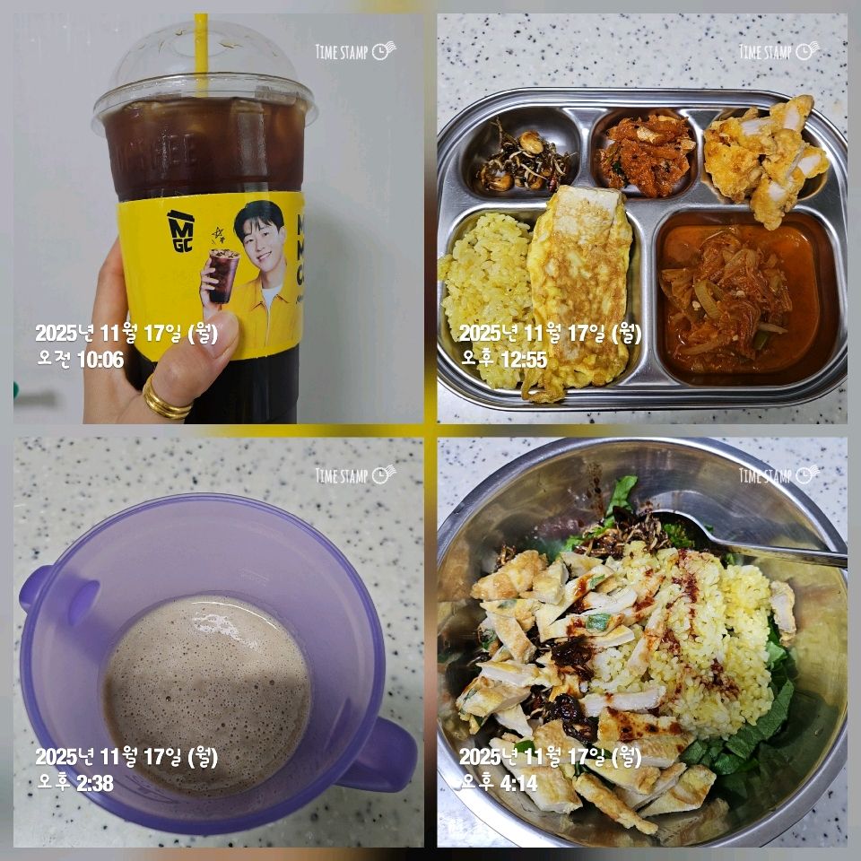 아침식사: 무가당두유1잔, 아메리카노1잔점심식사: 쑥개떡2개, 구운계란2