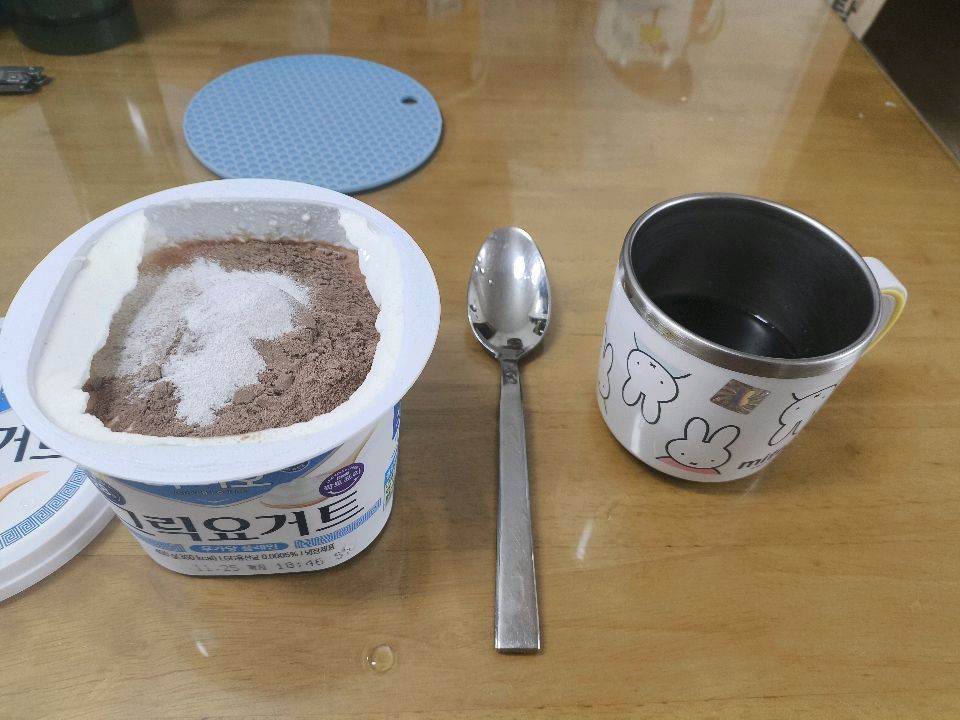 아침식사: 무가당두유1잔, 디카페인 아메리카노1잔점심식사: 쑥개떡2개,